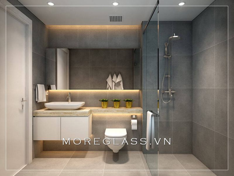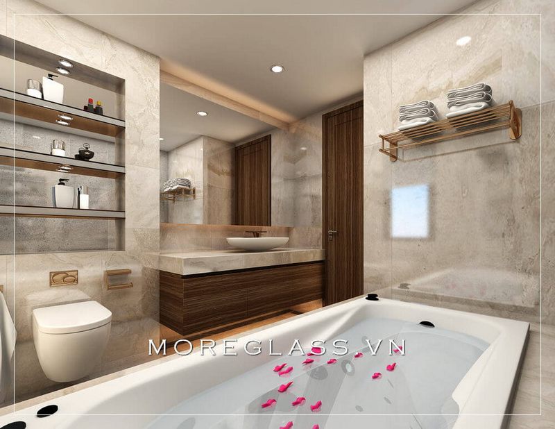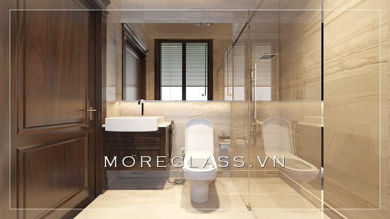 Phòng tắm chính của biệt thự, nhà phố, chung cư cao cấp thiết kế theo kiểu hiện đại, chia ngăn sạch sẽ bằng kính chắn cường lực cao cấp