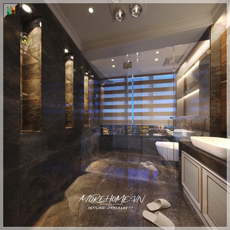 Mẫu thiết kế phòng tắm hiện đại với cách bố trí không gian hợp lí cho nhà phố cao cấp