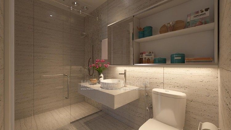 Phòng tắm nội thất trang trí hiện đại đơn giản không cầu kì nhưng không kém phần tiện nghi thoải mái