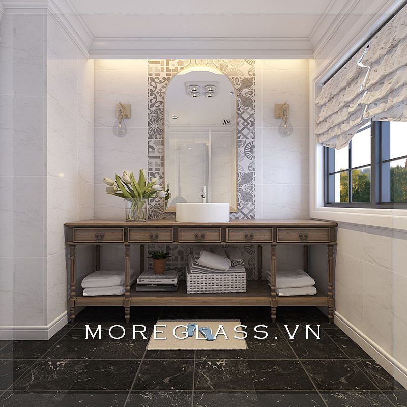 Mẫu kệ tủ gỗ tự nhiên cao cấp cho không gian phòng tắm biệt thự tân cổ điển
